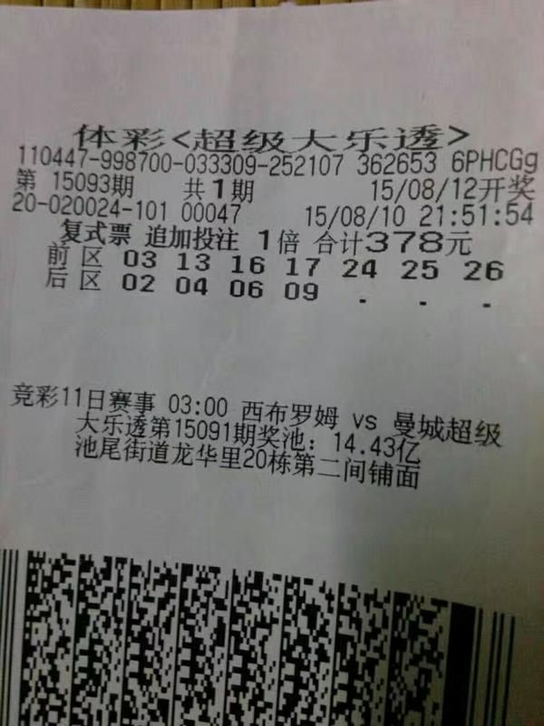 奖金全部两万多·当时买的号码是3+13+16+17+24+25+26=02+04+06+09然后开了16+17+25+26+27=02+04