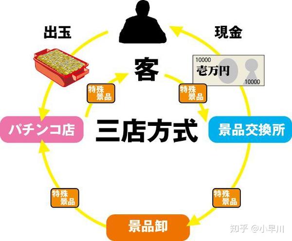 然后奖品兑换处会把这些从客人那里收来的特殊奖品再卖给一家专门回收特殊奖品的大批发商,批发商会再回卖给弹子球老虎机店,形成了奖品变现的闭环。